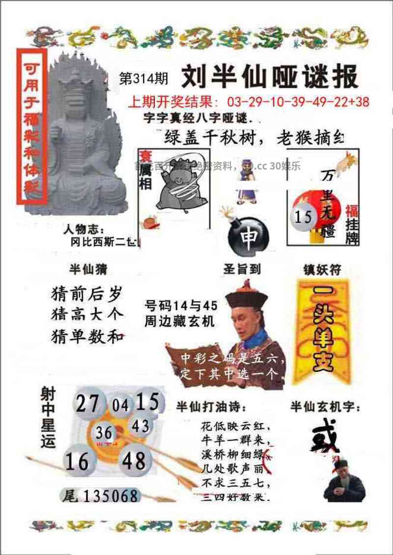 | 314期 | 1-2-3-5-6-8-9 | 羊23中 |